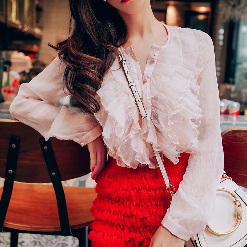 ♥新品 レースパウダーシャツブラウス シルク 韓国系 ガーリー お呼ばれ カジュアル フェミニン エレガント 同窓会 女子会 海 食事会 合コン パーティー BB7940877