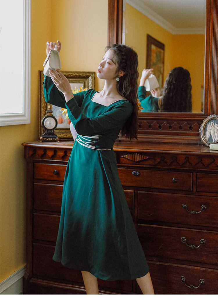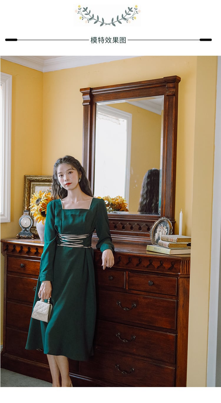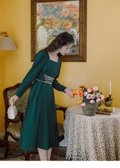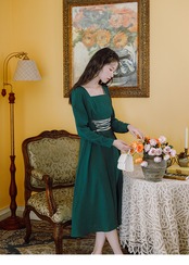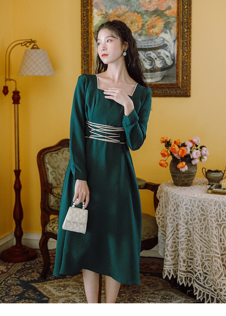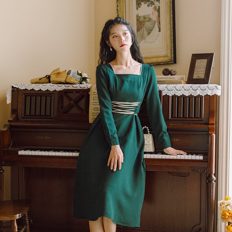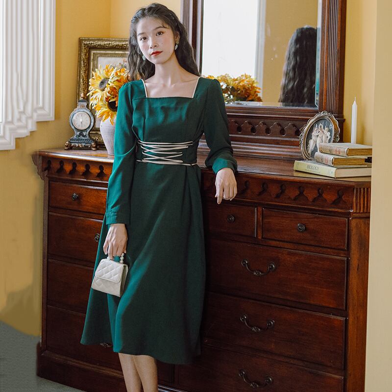 ♥♡♥ ★スカート ♡スタンダード長袖スリーブ ロング レトロ スクウェア ♥♡♥韓国系 ガーリー お呼ばれ カジュアル フェミニン エレガント ビジュー 清楚 オルチャン AA4085501 | miel style clothing
