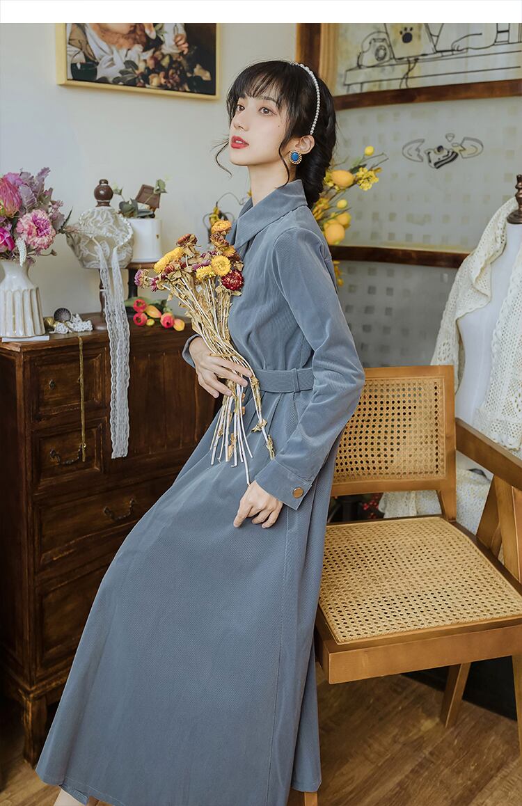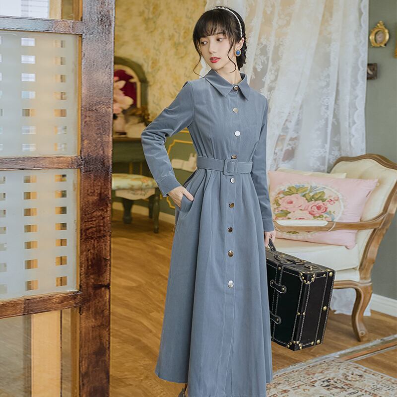 ♥♡♥ ブルーロングスカート ★スタンダードコーデュロイウィンター レトロ 冬物 ♥♡♥韓国系 ガーリー お呼ばれ カジュアル フェミニン エレガント ビジュー 清楚 オルチャン AA68321323310 | miel style clothing