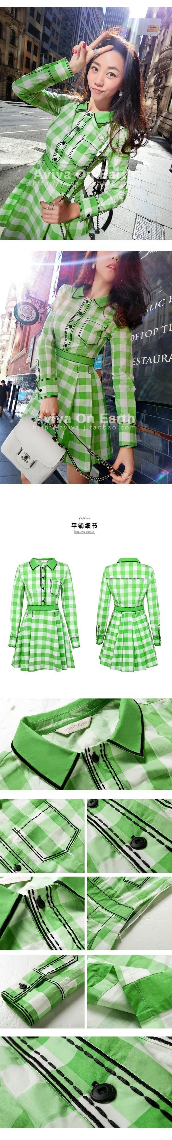 ♥新品 グリーンチェック柄シャツブラウス★Aラインスカート 韓国系 ガーリー お呼ばれ カジュアル フェミニン エレガント 同窓会 女子会 海 食事会 合コン パーティー BB21356783344 | miel style clothing