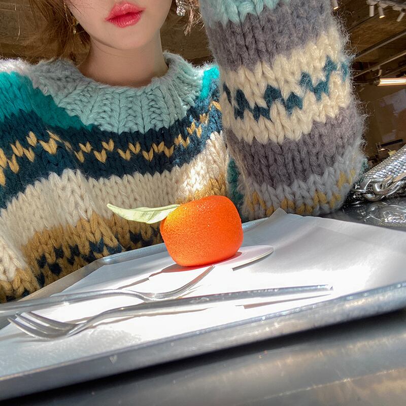 ♥新品 マルチカラーストライプスタンダードセーター ルーズオータム レトロ 秋物 韓国系 ガーリー お呼ばれ カジュアル フェミニン エレガント 同窓会 女子会 海 食事会 合コン パーティー BB46781677005 | miel style clothing