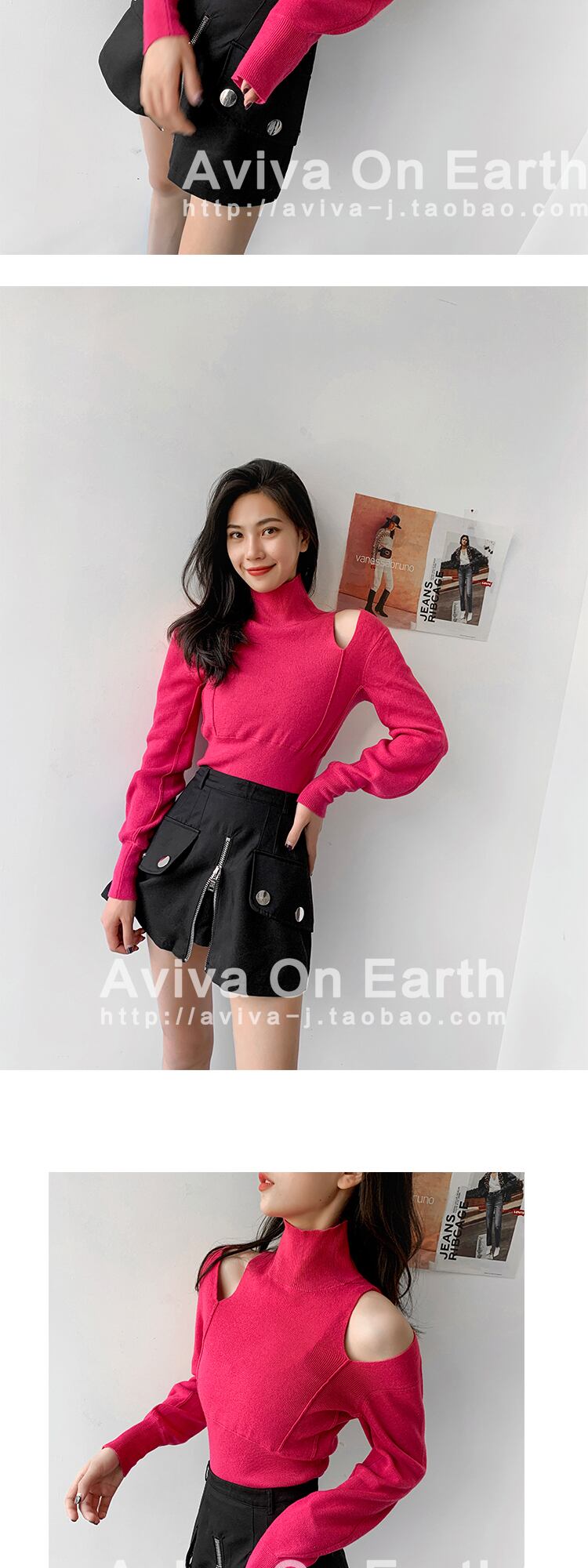 ♥ブラックパウダーピンクスキニースリム肩だしプルオーバー セーター トップス ロングスリーブ オフショルダー 韓国系 ガーリー お呼ばれ カジュアル フェミニン エレガント 同窓会 女子会 海 食事会 合コン パーティー BB4284767759 | miel style clothing