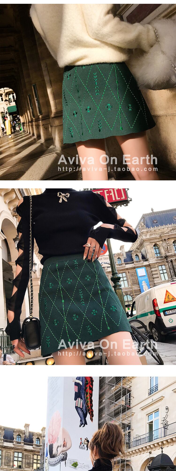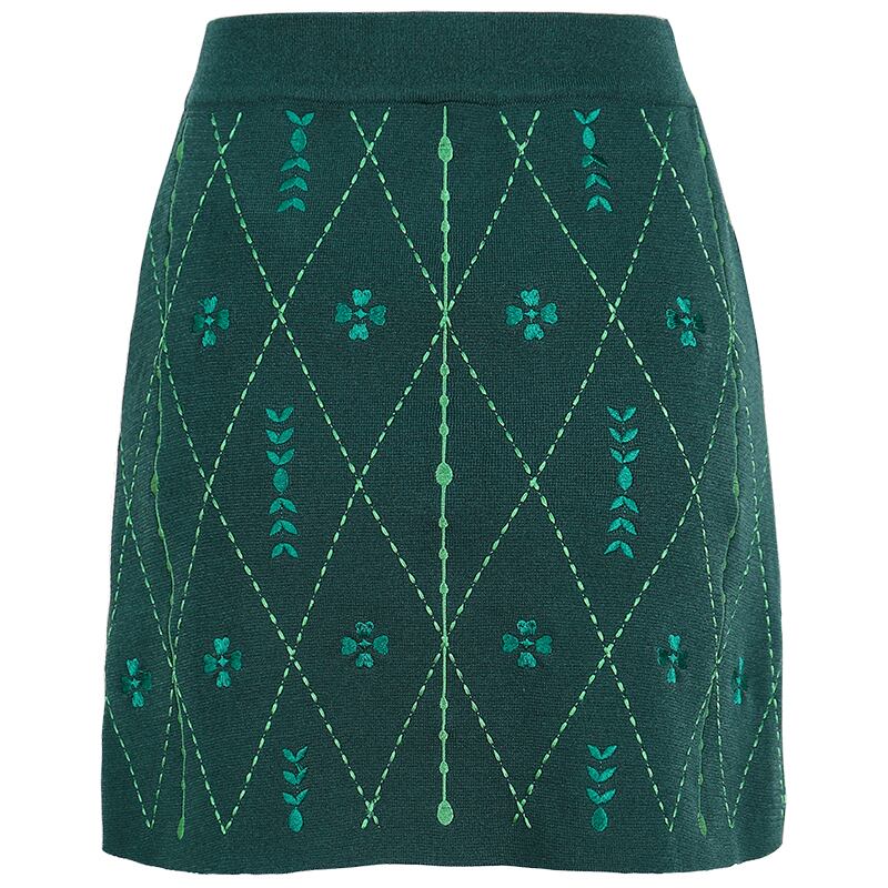 ♥新品 グリーンウールニットスカート Aライン刺繍 韓国系 ガーリー お呼ばれ カジュアル フェミニン エレガント 同窓会 女子会 海 食事会 合コン パーティー BB1563251175 | miel style clothing
