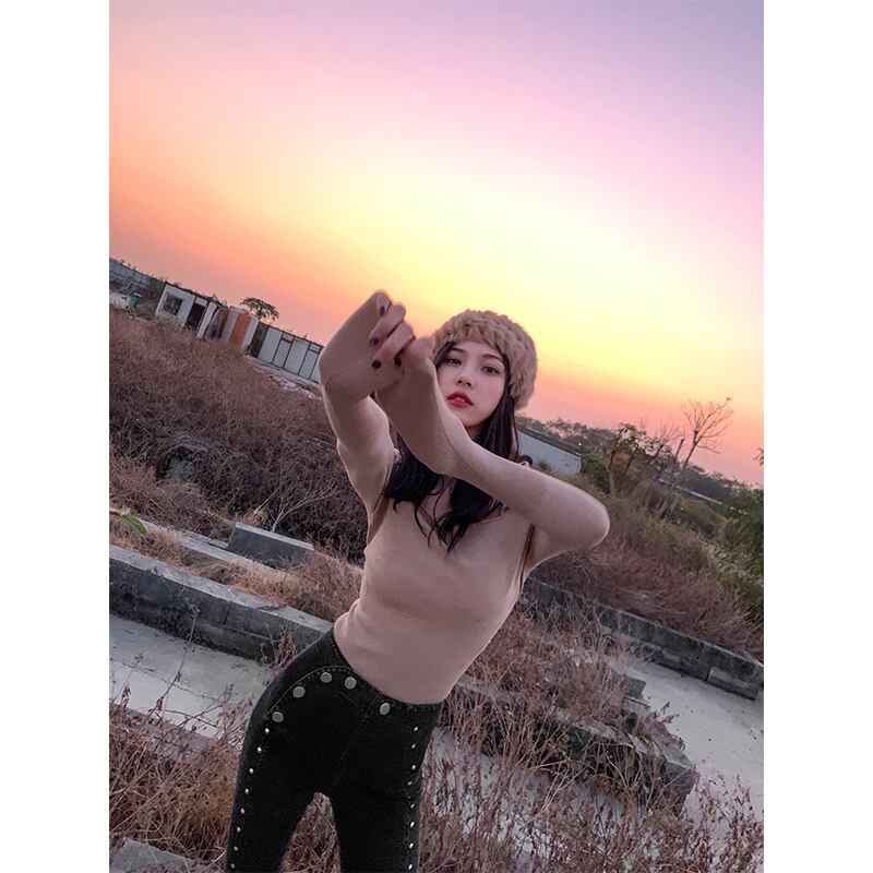♥新品 ショートニットシャツブラウスソリッド カラープルオーバー トップス ロング ソリッドカラー スクウェア 韓国系 ガーリー お呼ばれ カジュアル フェミニン エレガント 同窓会 女子会 海 食事会 合コン パーティー BB28375325133 | miel style clothing