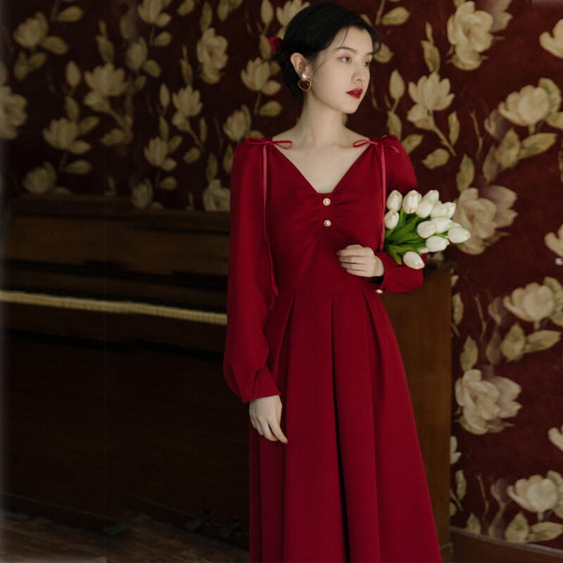 ♥ スタンダード★スカート レッド♡ レトロ ♥♡♥韓国系 ガーリー お呼ばれ カジュアル フェミニン エレガント ビジュー 清楚 オルチャン AA15984751180 | miel style clothing