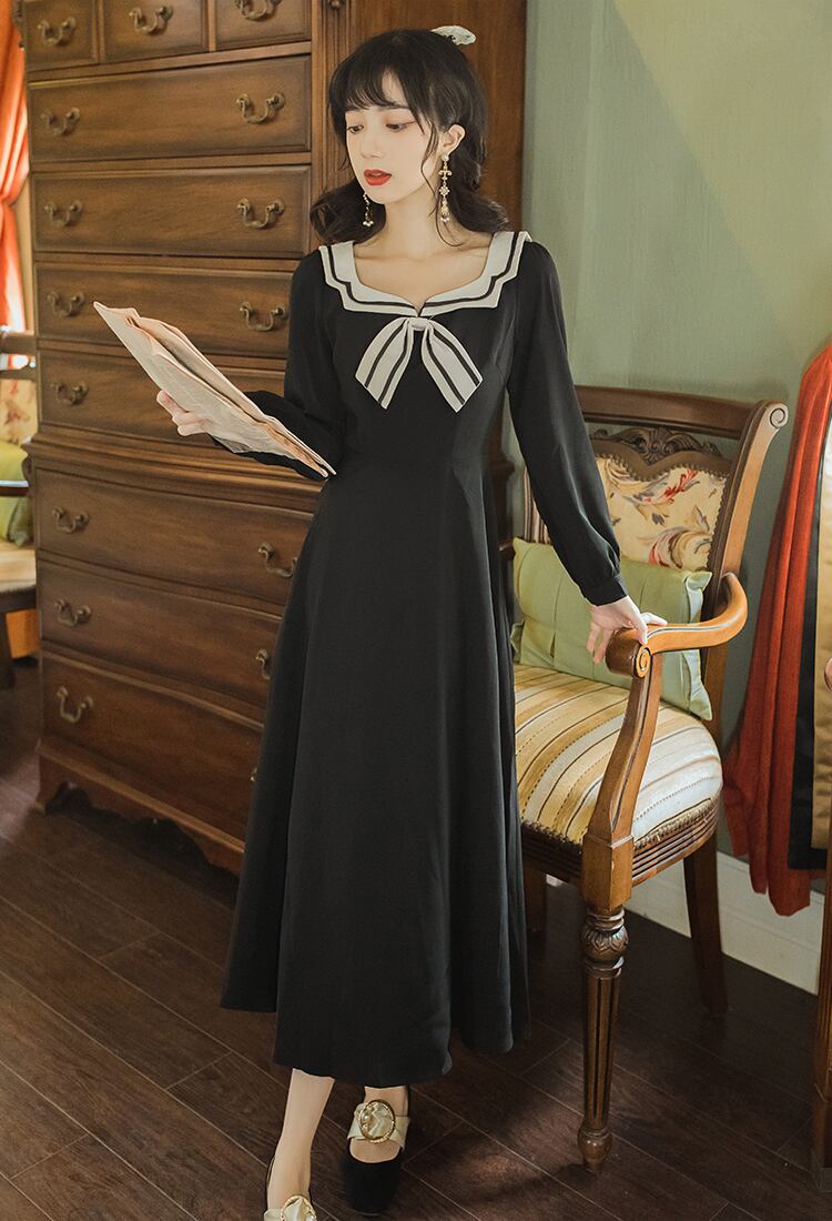 ♥ スタンダードネイビー♡ブラックスカート ♥カワイイ♥ レトロ スウィート ♥♡♥韓国系 ガーリー お呼ばれ カジュアル フェミニン エレガント ビジュー 清楚 オルチャン AA27458736293 | miel style clothing