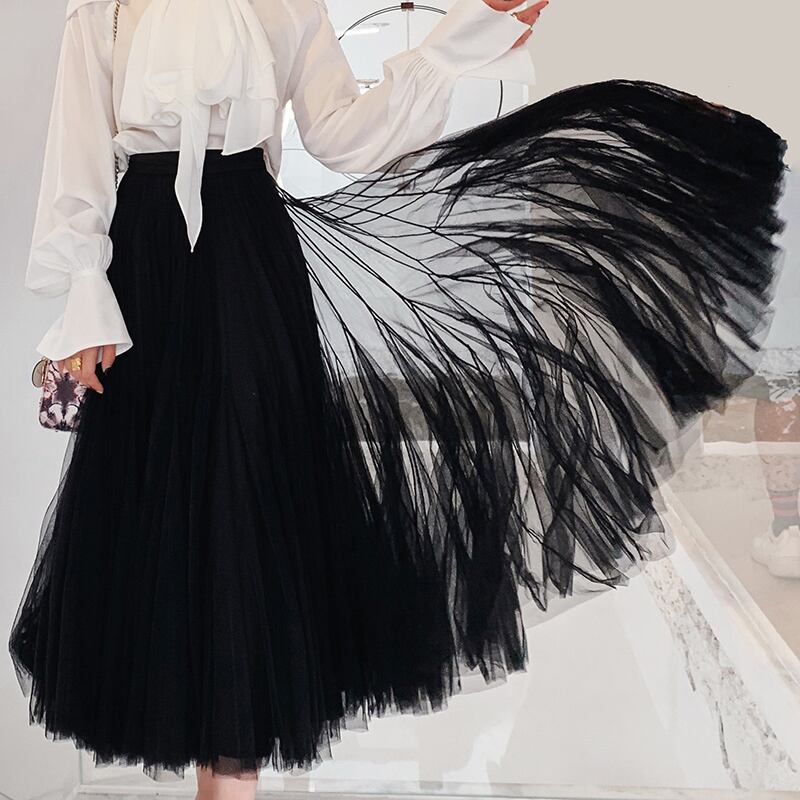 ♥新品 ブラックプリーツメッシュスカート Aライン 韓国系 ガーリー お呼ばれ カジュアル フェミニン エレガント 同窓会 女子会 海 食事会 合コン パーティー BB22010524559 | miel style clothing