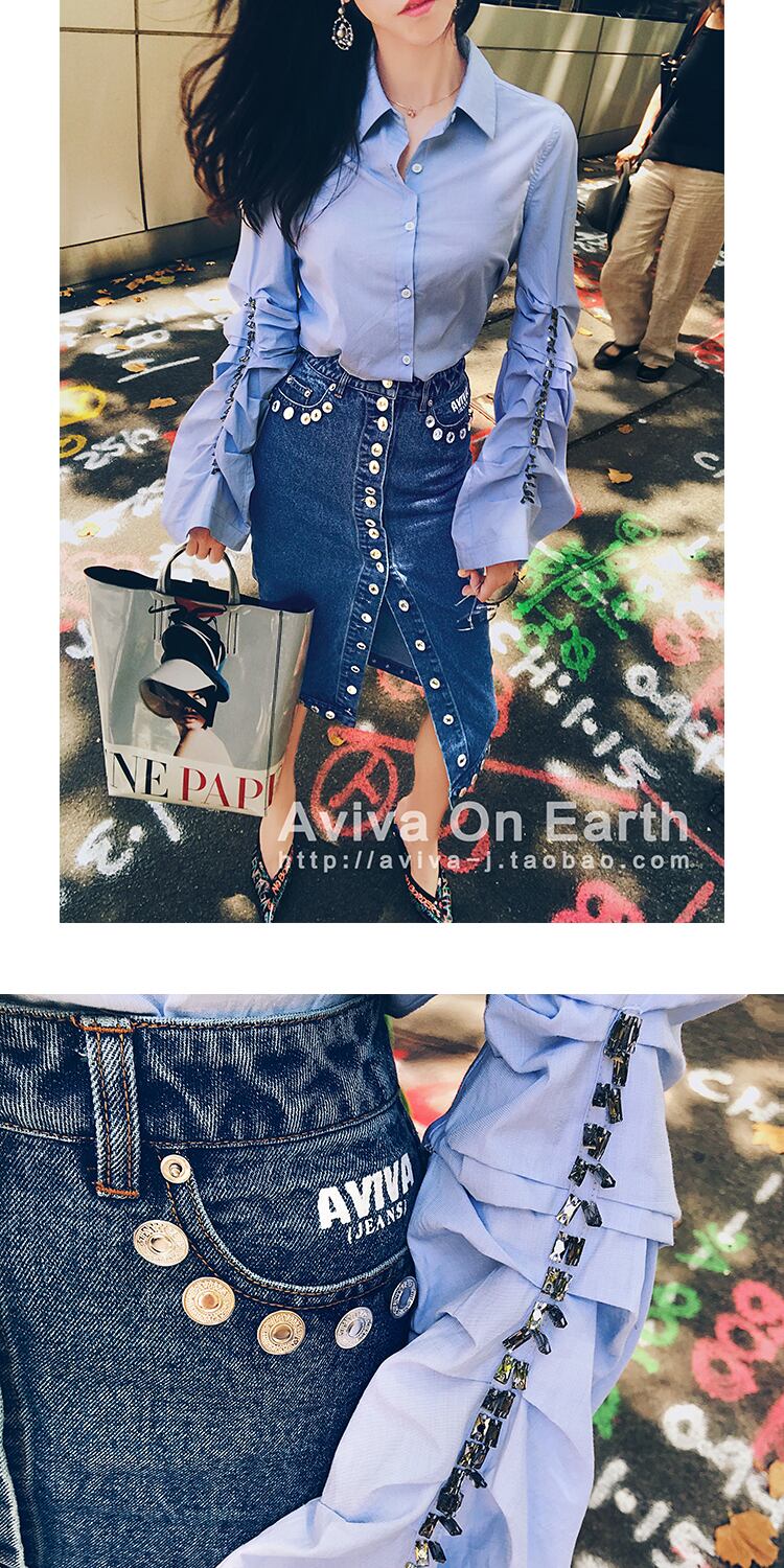 ♥新品 シャツブラウス♡ブルースリムトップス 韓国系 ガーリー お呼ばれ カジュアル フェミニン エレガント 同窓会 女子会 海 食事会 合コン パーティー BB7544568880 | miel style clothing