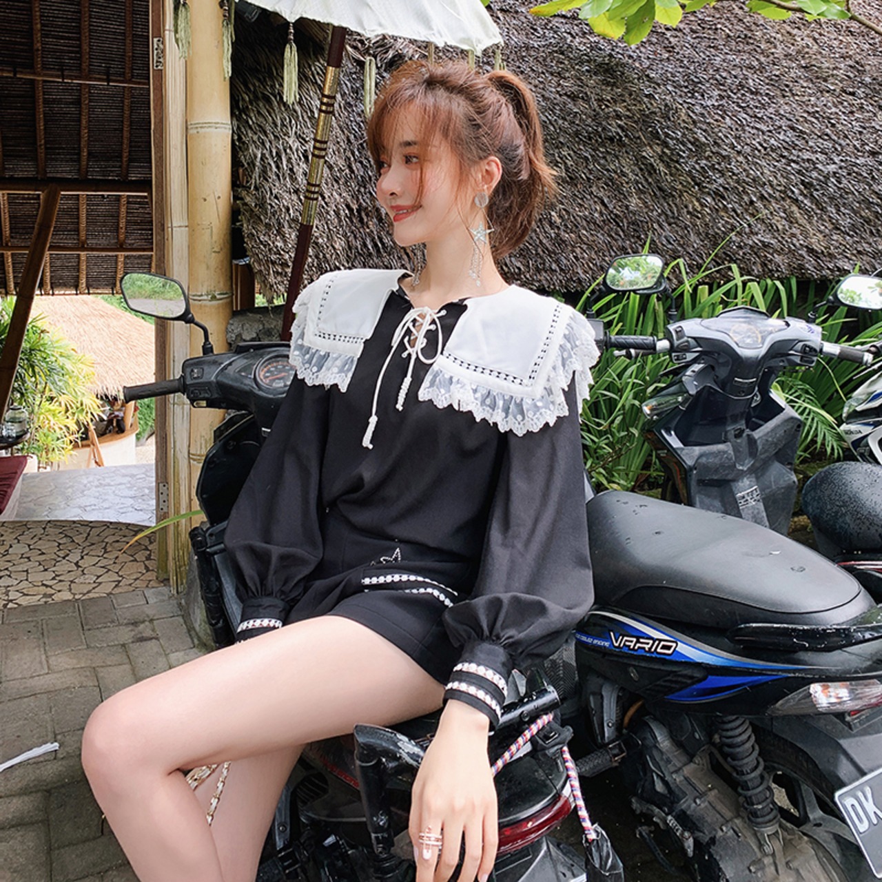 ♥新品 ブラックネイビーシャツブラウス♡長袖スリーブブラウス 大人女子☆ ロング スウィート ガーリー 韓国系 ガーリー お呼ばれ カジュアル フェミニン エレガント 同窓会 女子会 海 食事会 合コン パーティー BB40530974245 | miel style clothing
