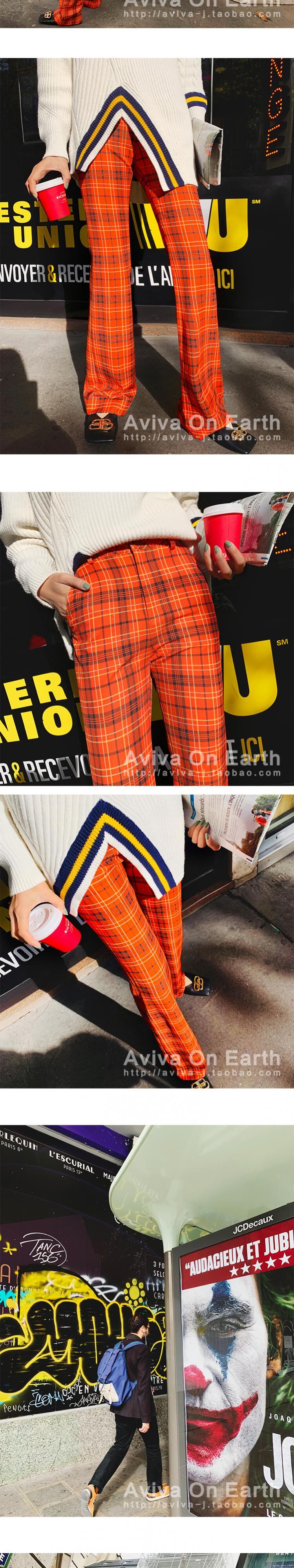♥新品 オレンジチェック柄カジュアルパンツ ハイウェストロング 韓国系 ガーリー お呼ばれ カジュアル フェミニン エレガント 同窓会 女子会 海 食事会 合コン パーティー BB66313522970 | miel style clothing
