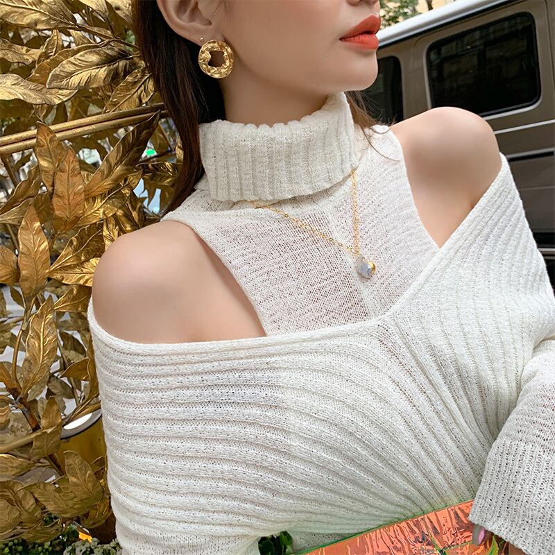♥新品 白セーター スリム ホワイト オフショルダー 韓国系 ガーリー お呼ばれ カジュアル フェミニン エレガント 同窓会 女子会 海 食事会 合コン パーティー BB17410239830 | miel style clothing