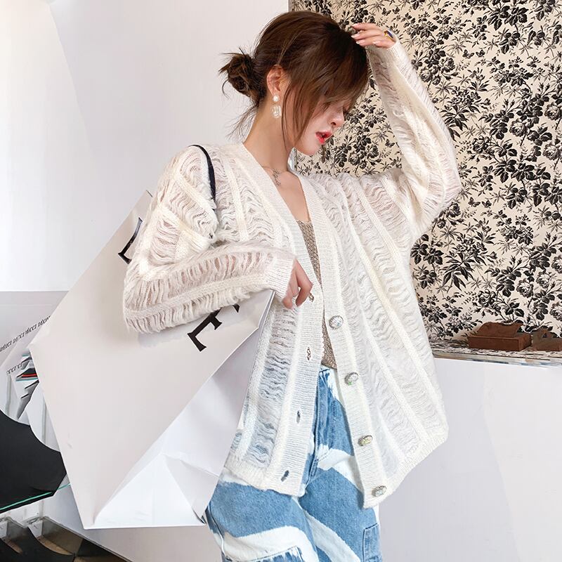 ♥新品 白ニットカーディガンセーター ルーズ♥カワイイ♥長袖スリーブトップスオータムジャケット ロング ホワイト 秋物 韓国系 ガーリー お呼ばれ カジュアル フェミニン エレガント 同窓会 女子会 海 食事会 合コン パーティー BB83684290935 | miel style clothing