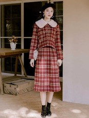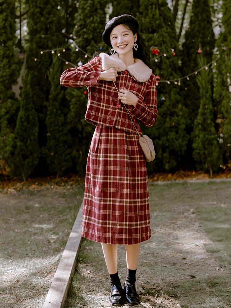 ♥ ウィンター♡レッドチェック柄 冬物 ♥♡♥韓国系 ガーリー お呼ばれ カジュアル フェミニン エレガント ビジュー 清楚 オルチャン AA20473029152 | miel style clothing
