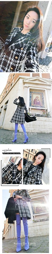 ♥新品 ダブルブラック白チェック柄コート ホワイト 韓国系 ガーリー お呼ばれ カジュアル フェミニン エレガント 同窓会 女子会 海 食事会 合コン パーティー BB97009643239 | miel style clothing