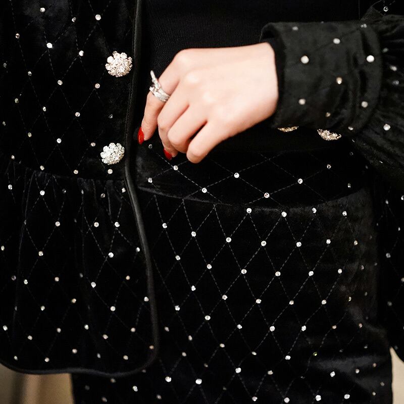 ♥新品 ブラック水玉スカート ラインストーン★ショート 韓国系 ガーリー お呼ばれ カジュアル フェミニン エレガント 同窓会 女子会 海 食事会 合コン パーティー BB84663524023 | miel style clothing