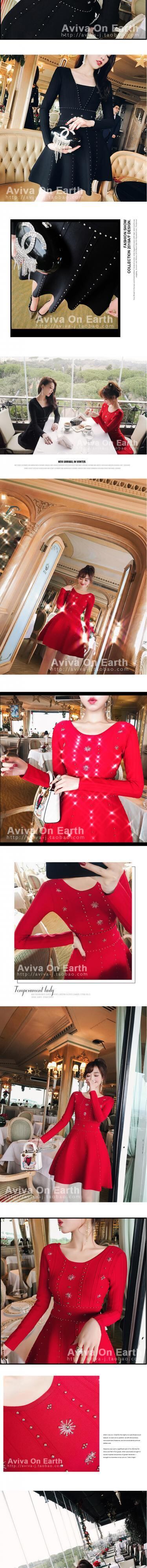 ♥新品ウィンタービジューシフォンタイトワンピースドレスOP スカート 冬物 韓国系 ガーリー お呼ばれ カジュアル フェミニン エレガント 同窓会 女子会 海 食事会 合コン パーティー BB19304580253 | miel style clothing