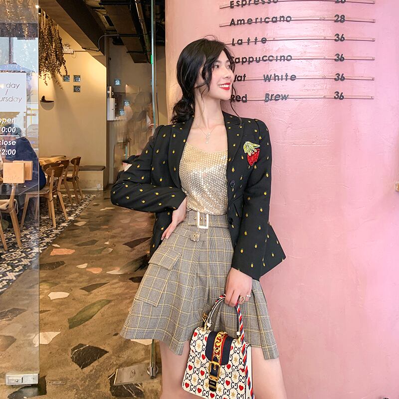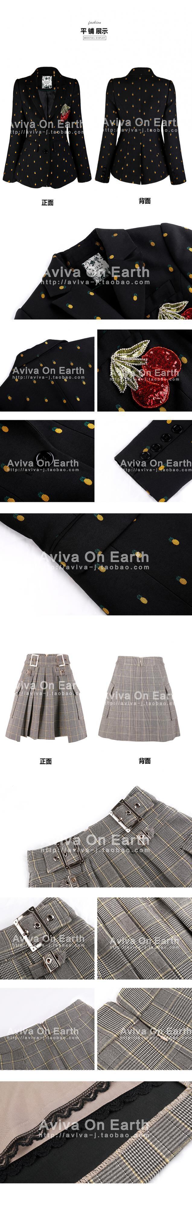色:チェリーパイナップルスーツ,ウールチェック柄スカート