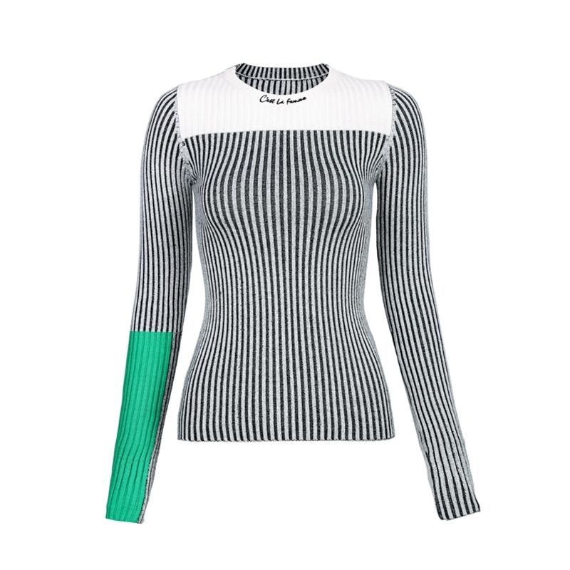 ♥新品 ブラック白ストライプスキニースリムグリーンセーター プルオーバー ウィンター ホワイト 冬物 韓国系 ガーリー お呼ばれ カジュアル フェミニン エレガント 同窓会 女子会 海 食事会 合コン パーティー BB79641146032 | miel style clothing