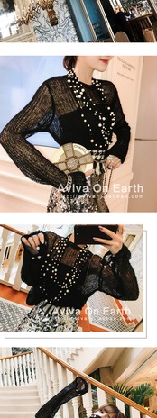 ♥新品 ブラックセーター ウィンタープルオーバー パールネックレス ロング レース 冬物 真珠 韓国系 ガーリー お呼ばれ カジュアル フェミニン エレガント 同窓会 女子会 海 食事会 合コン パーティー BB64340035298 | miel style clothing