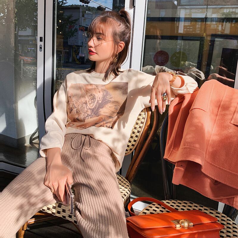 ♥新品 スタンダードプリントTシャツ ウィンターセーター ロング レトロ 長袖 冬物 韓国系 ガーリー お呼ばれ カジュアル フェミニン エレガント 同窓会 女子会 海 食事会 合コン パーティー BB27750948455 | miel style clothing