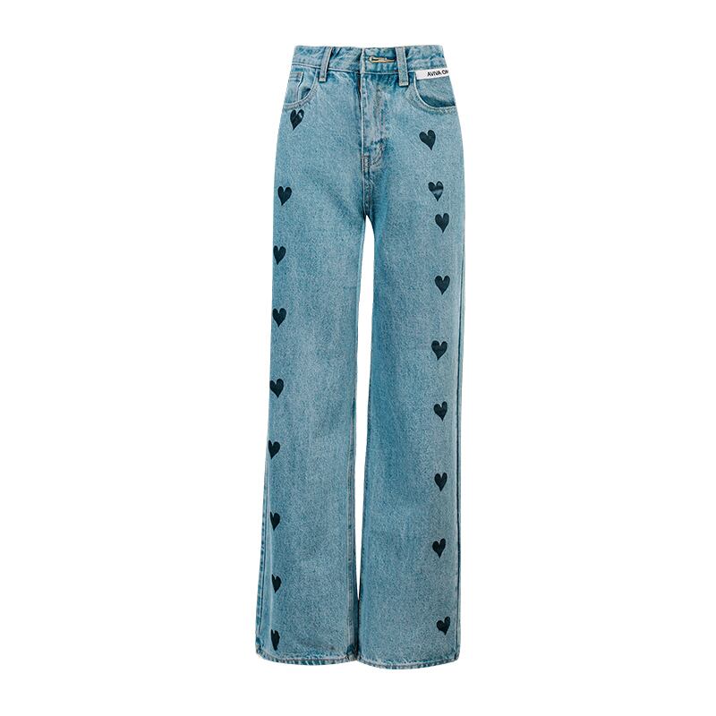 ♥新品 ハイウェストプリントジーンズ ♥カワイイ♥ウィンター レッド 冬物 韓国系 ガーリー お呼ばれ カジュアル フェミニン エレガント 同窓会 女子会 海 食事会 合コン パーティー BB71699921012 | miel style clothing