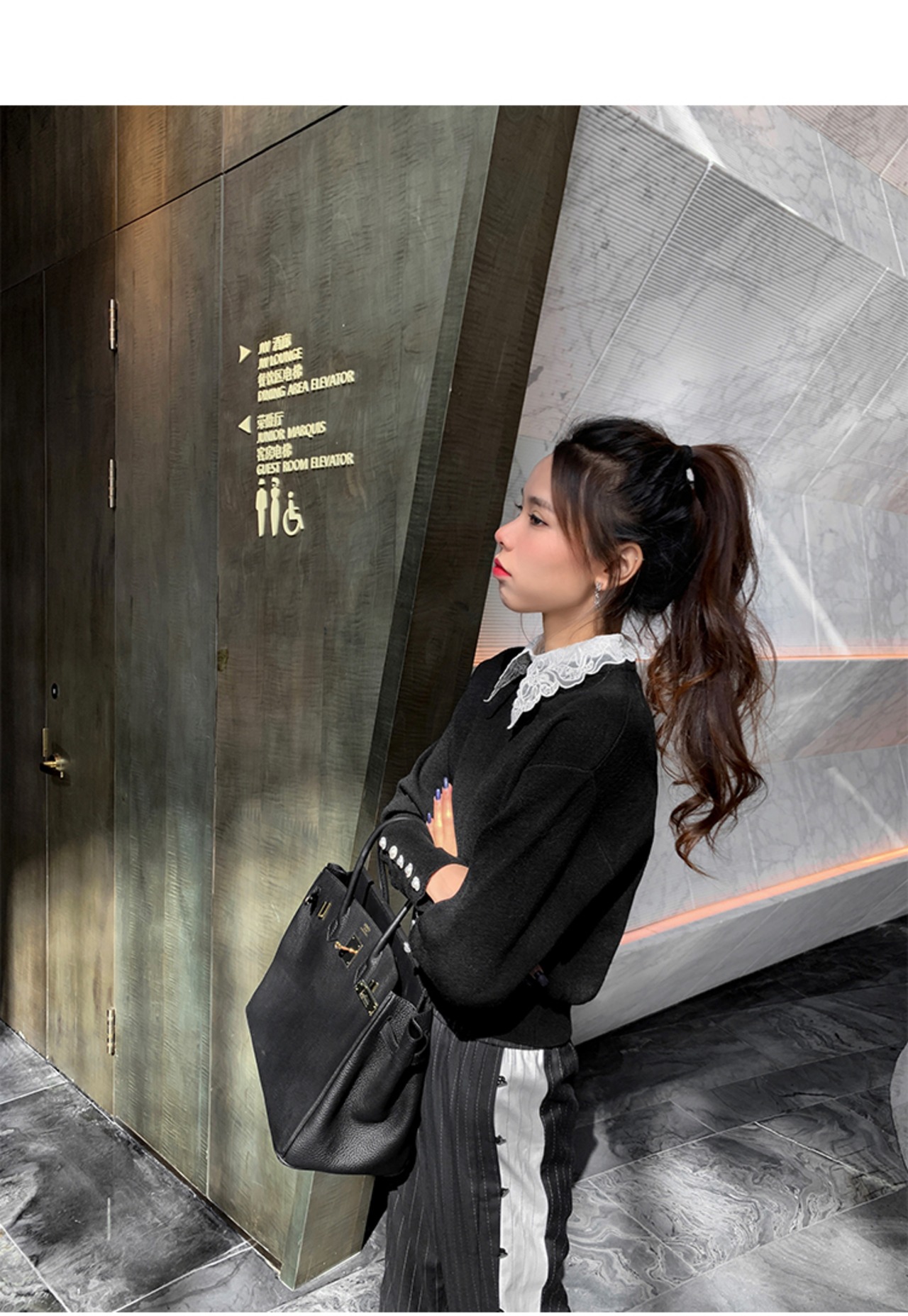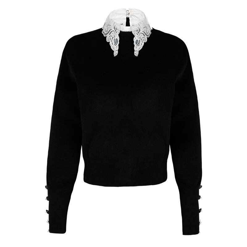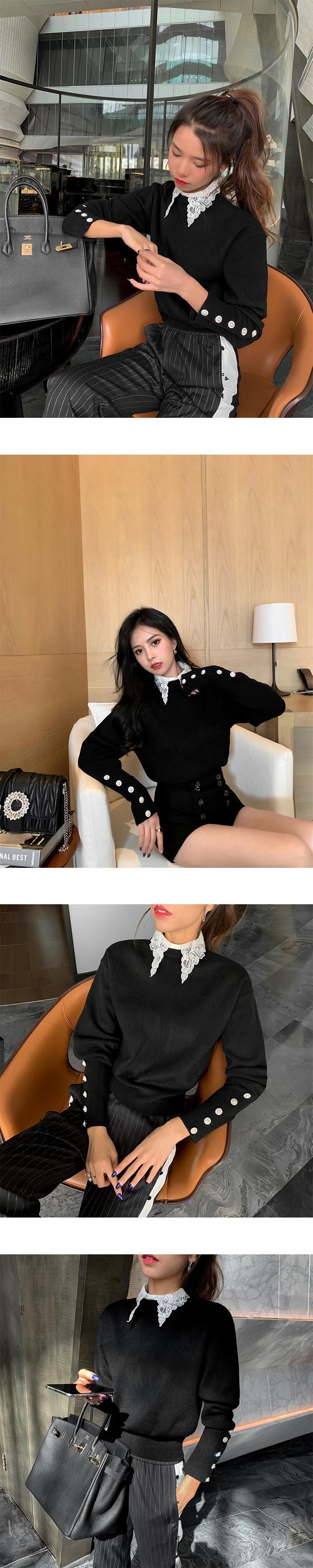 ♥刺繍レース襟付きロングスリーブボタンニットセーター ウィンター♡ショート 秋冬 韓国系 ガーリー お呼ばれ カジュアル フェミニン エレガント 同窓会 女子会 海 食事会 合コン パーティー BB22693413155 | miel style clothing