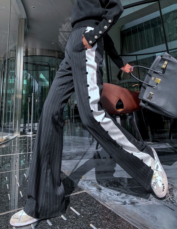 ♥新品 ストライプパンツ ウィンターカジュアル 冬物 ステッチ 韓国系 ガーリー お呼ばれ カジュアル フェミニン エレガント 同窓会 女子会 海 食事会 合コン パーティー BB21383659411 | miel style clothing