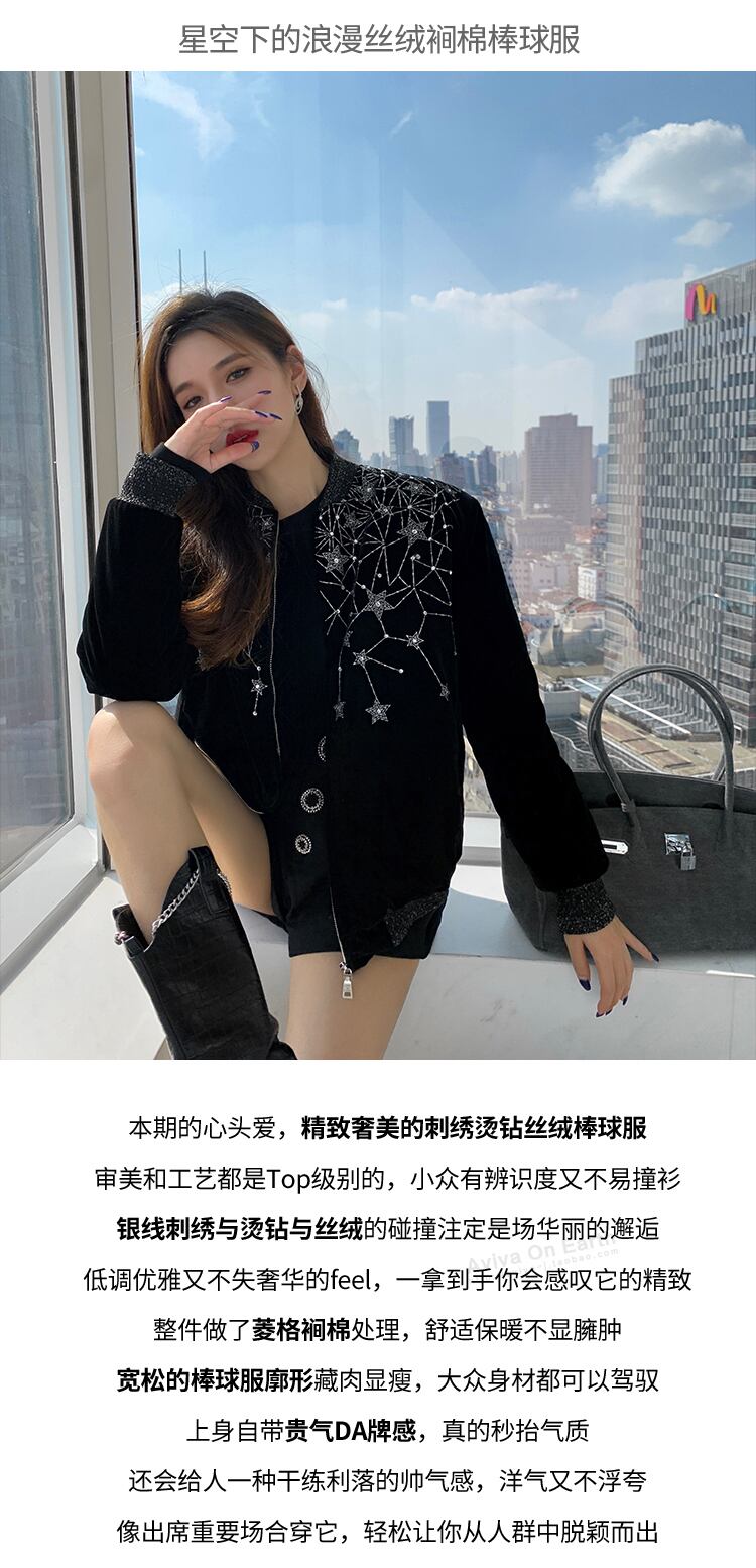♥新品 ブラックラインストーンジャケット オータム 秋物 ウィンター 冬物 韓国系 ガーリー お呼ばれ カジュアル フェミニン エレガント 同窓会 女子会 海 食事会 合コン パーティー BB6104817067 | miel style clothing