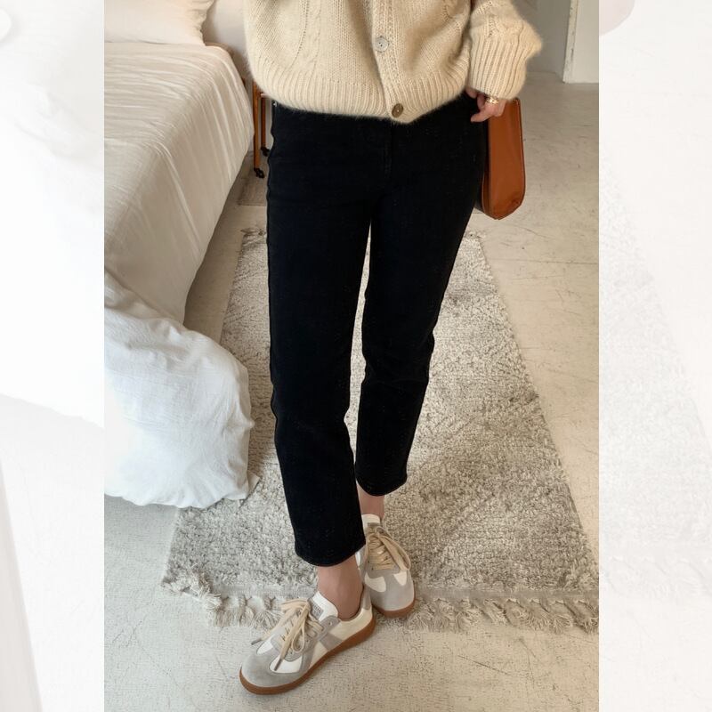 ♥ ★ジーンズ ウィンター♡ベルベットブラックパンツ 冬物 ♥♡♥韓国系 ガーリー お呼ばれ カジュアル フェミニン エレガ ント ビジュー 清楚 オルチャン CC2344861262 | miel style clothing