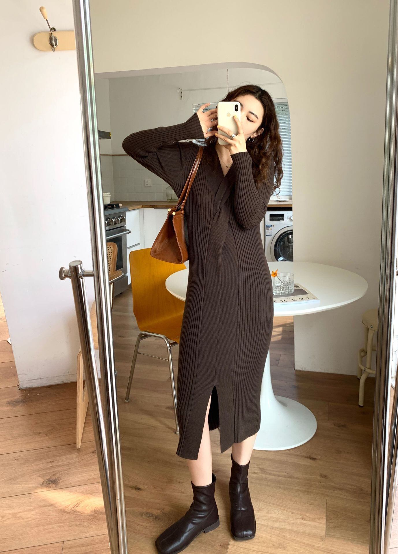 ♥ ウールニットウィンタースタンダード♡セーター スカート 大人女子☆長袖スリーブ ロング レトロ 冬物 ♥♡♥韓国系 ガーリー お呼ばれ カジュアル フェミニン エレガ ント ビジュー 清楚 オルチャン CC32230120725 | miel style clothing
