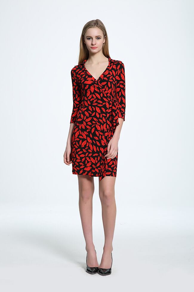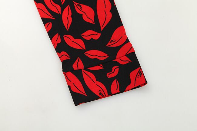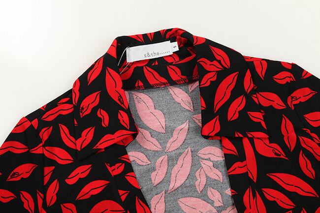 色:襟の長い袖が短い赤い唇,赤い唇の襟なし半袖