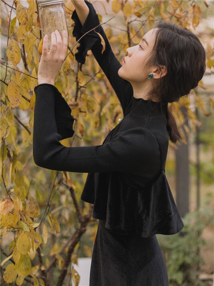 ♥ オータムセーター ゴールドベルベットスカート スタンダードウェストウィンタードレス レトロ 秋物 冬物 ♥韓国系 欧州 ヨーロッパ インテリア ハイブランド ビジュー 宝石 ダイヤモンド ラインストーン ガーリー お呼ばれ カジュアル フェミニン エレガント 同窓会 女子会 海 食事会 合コン パーティー ド派手 メイク BTS TWICE NiziU BLACKPINK AA52924059191 | miel style clothing