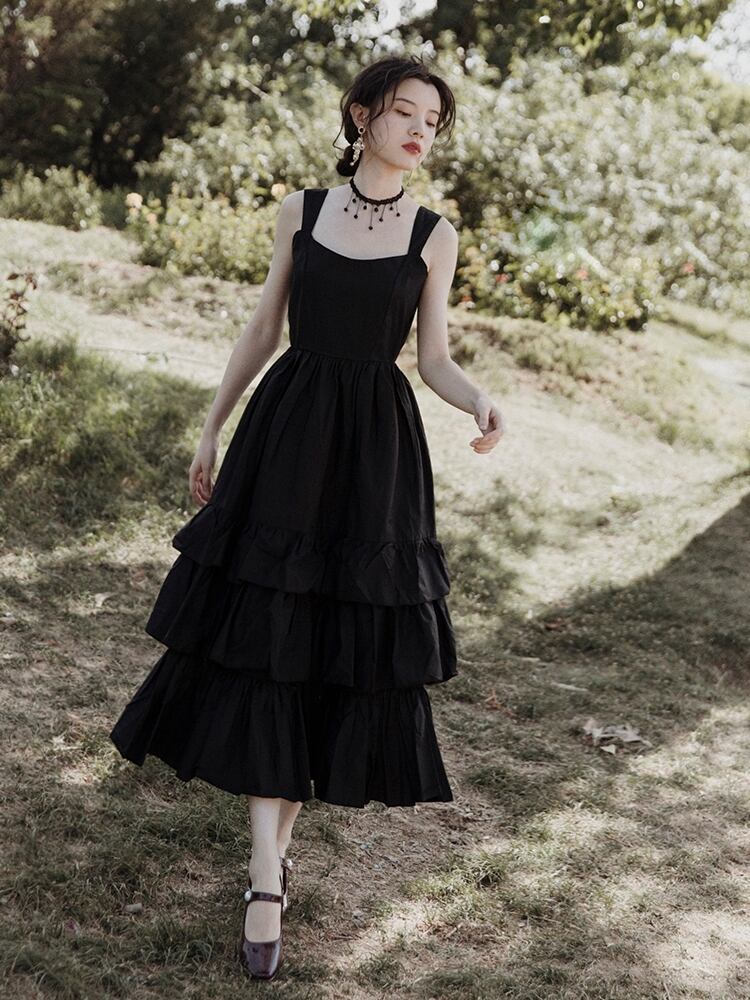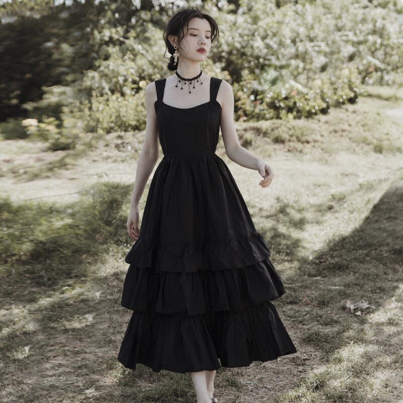 ♥ ブラックスカート スタンダードドレス スタイルロングサマー レトロ 夏物 ♥韓国系 欧州 ヨーロッパ インテリア ハイブランド ビジュー 宝石 ダイヤモンド ラインストーン ガーリー お呼ばれ カジュアル フェミニン エレガント 同窓会 女子会 海 食事会 合コン パーティー ド派手 メイク BTS TWICE NiziU BLACKPINK AA95671051889 | miel style clothing