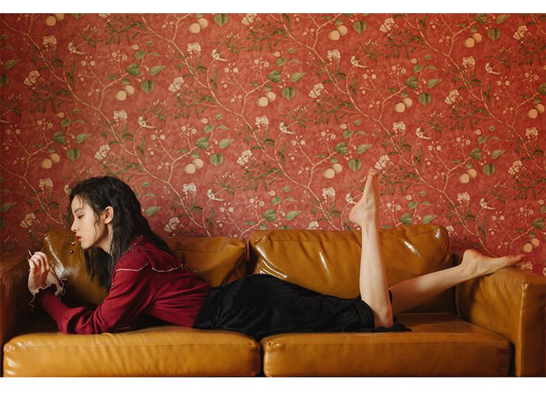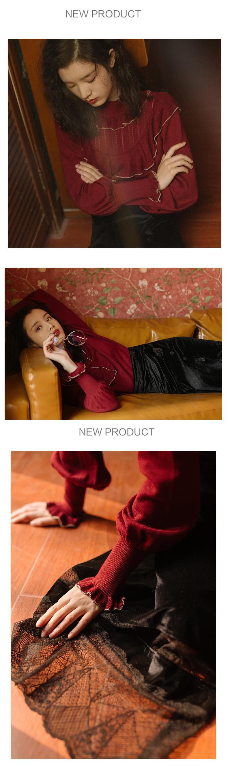 色:バーガンディセーター+ベルベットスカート