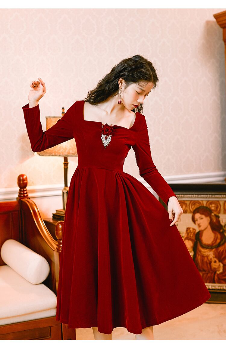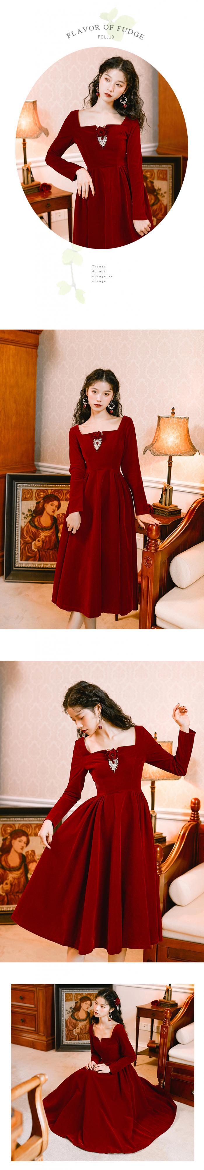 ♥ スタンダードスタイルレッドドレス ベルベットスカート ワンピース レトロ ♥韓国系 欧州 ヨーロッパ インテリア ハイブランド ビジュー 宝石 ダイヤモンド ラインストーン ガーリー お呼ばれ カジュアル フェミニン エレガント 同窓会 女子会 海 食事会 合コン パーティー ド派手 メイク BTS TWICE NiziU BLACKPINK AA39838518124 | miel style clothing
