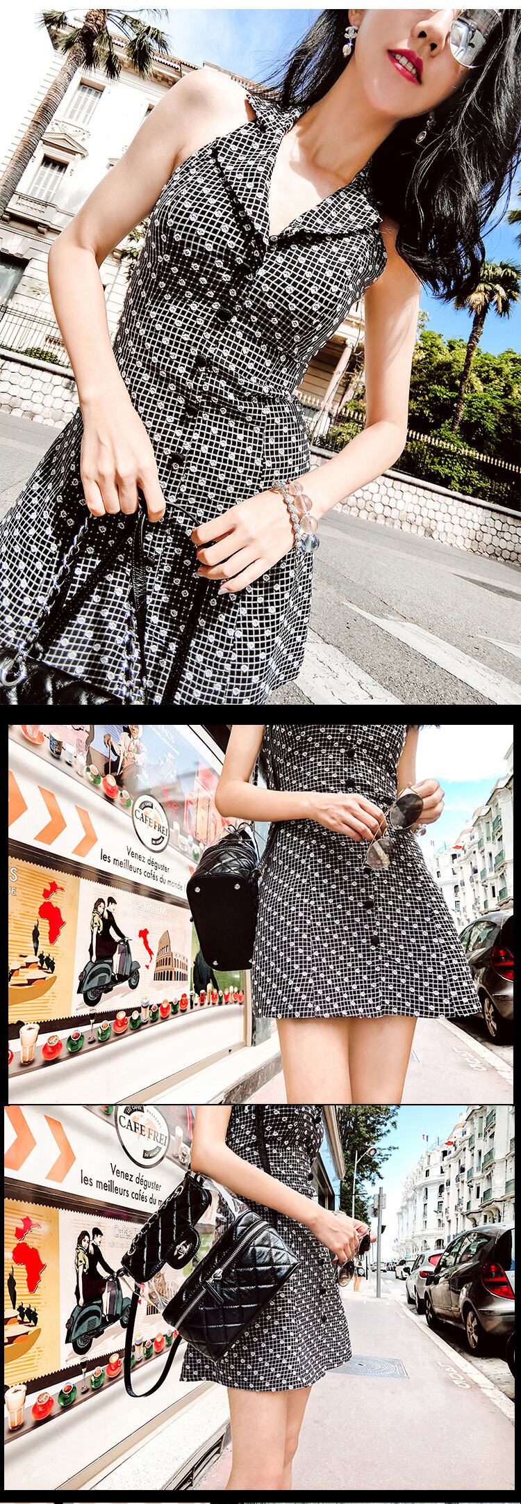 ♥ 格子柄ブラックホワイト水玉ホルタードレス スタイル ♥韓国系 欧州 ヨーロッパ インテリア ハイブランド ビジュー 宝石 ダイヤモンド ラインストーン ガーリー お呼ばれ カジュアル フェミニン エレガント 同窓会 女子会 海 食事会 合コン パーティー ド派手 メイク BTS TWICE NiziU BLACKPINK BB68490027017 | miel style clothing