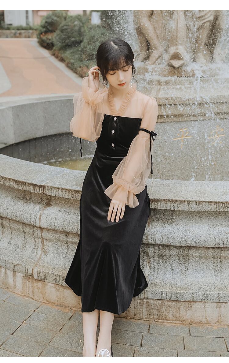 ♥ スタイルブラックドレス スリーブロングスカート レース ♥韓国系 欧州 ヨーロッパ インテリア ハイブランド ビジュー 宝石 ダイヤモンド ラインストーン ガーリー お呼ばれ カジュアル フェミニン エレガント 同窓会 女子会 海 食事会 合コン パーティー ド派手 メイク BTS TWICE NiziU BLACKPINK AA81744065844 | miel style clothing