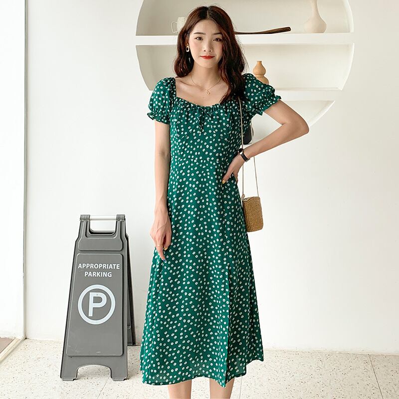 ♥ サマーグリーンフローラルドレス スリーブスカート 夏物 花柄 ♥韓国系 欧州 ヨーロッパ インテリア ハイブランド ビジュー 宝石 ダイヤモンド ラインストーン ガーリー お呼ばれ カジュアル フェミニン エレガント 同窓会 女子会 海 食事会 合コン パーティー ド派手 メイク BTS TWICE NiziU BLACKPINK CC73830925657 | miel style clothing