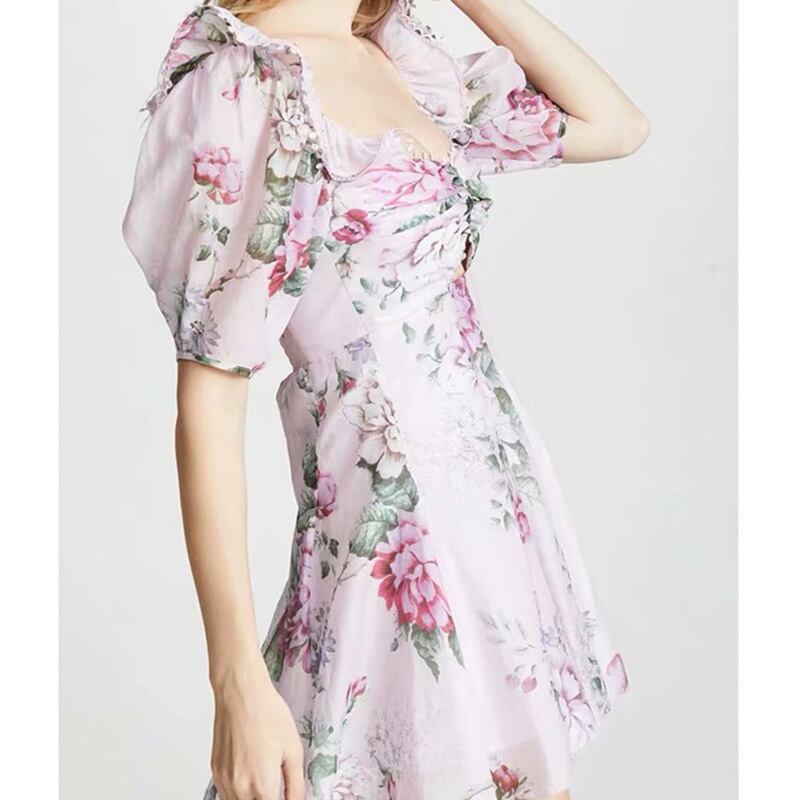♥ ウェストスリーブドレス Flowerデザイン カラーハイウェストショートスカート プリントシフォン フラワーデザイン ♥韓国系 欧州 ヨーロッパ インテリア ハイブランド ビジュー 宝石 ダイヤモンド ラインストーン ガーリー お呼ばれ カジュアル フェミニン エレガント 同窓会 女子会 海 食事会 合コン パーティー ド派手 メイク BTS TWICE NiziU BLACKPINK CC66985485571 | miel style clothing