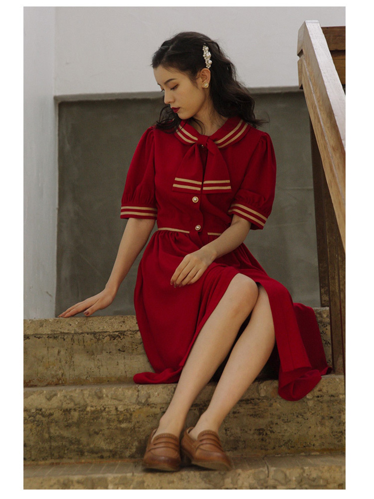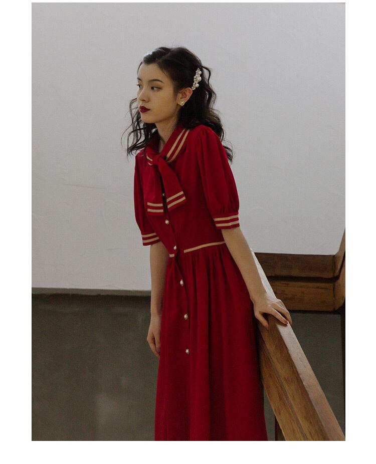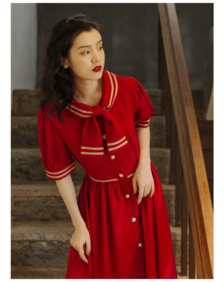 ♥ ドレス スタンダードスタイルレッドネイビー レトロ フラワーデザイン ♥韓国系 欧州 ヨーロッパ インテリア ハイブランド ビジュー 宝石 ダイヤモンド ラインストーン ガーリー お呼ばれ カジュアル フェミニン エレガント 同窓会 女子会 海 食事会 合コン パーティー ド派手 メイク BTS TWICE NiziU BLACKPINK AA30963996901 | miel style clothing