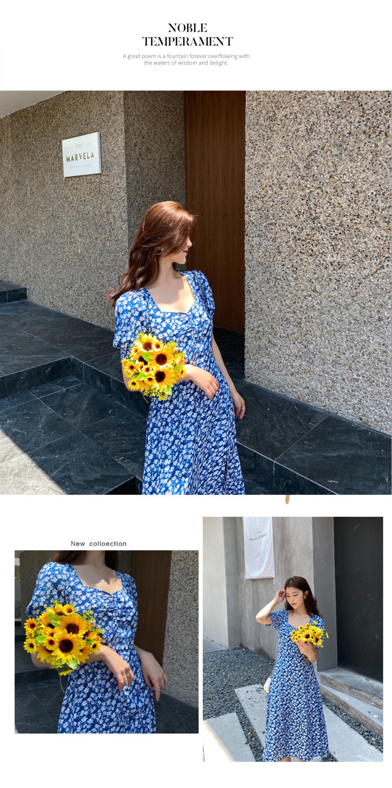 ♥ ドレス サマースタイルスリーブロングスカート ブルーフローラルVネックハイウェストウェスト 夏物 花柄 ♥韓国系 欧州 ヨーロッパ インテリア ハイブランド ビジュー 宝石 ダイヤモンド ラインストーン ガーリー お呼ばれ カジュアル フェミニン エレガント 同窓会 女子会 海 食事会 合コン パーティー ド派手 メイク BTS TWICE NiziU BLACKPINK CC80329370082 | miel style clothing