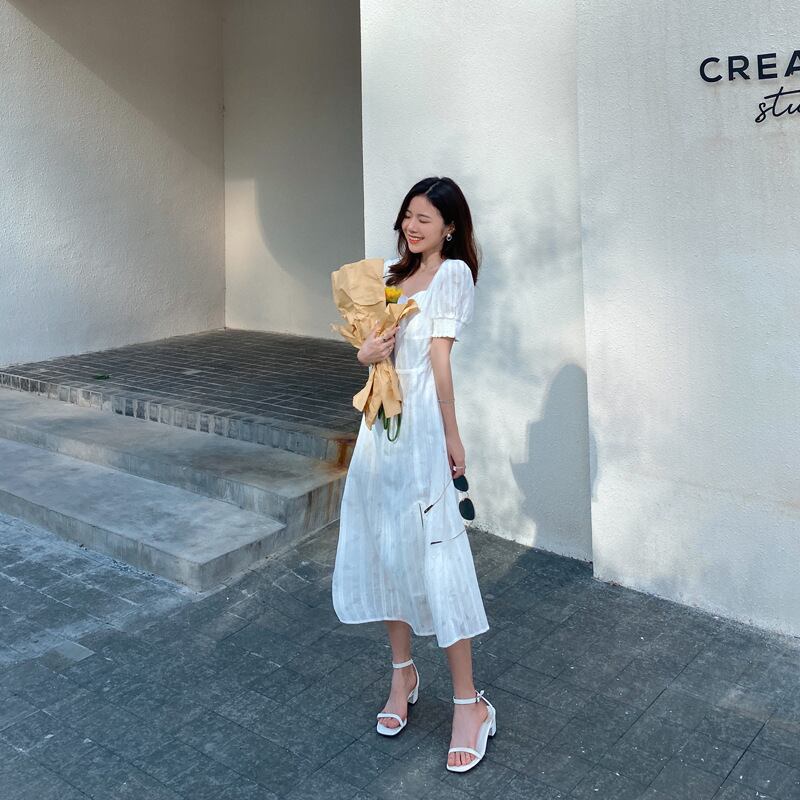 ♥ サマードレス サイドVネックスリーブミディスカート スリム 夏物 ♥韓国系 欧州 ヨーロッパ インテリア ハイブランド ビジュー 宝石 ダイヤモンド ラインストーン ガーリー お呼ばれ カジュアル フェミニン エレガント 同窓会 女子会 海 食事会 合コン パーティー ド派手 メイク BTS TWICE NiziU BLACKPINK CC35168267873 | miel style clothing