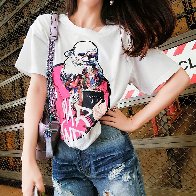 ♥ Tシャツ プリント柄ホワイトルーズブラウス ♥韓国系 欧州 ヨーロッパ インテリア ハイブランド ビジュー 宝石 ダイヤモンド ラインストーン ガーリー お呼ばれ カジュアル フェミニン エレガント 同窓会 女子会 海 食事会 合コン パーティー ド派手 メイク BTS TWICE NiziU BLACKPINK BB65991147157 | miel style clothing