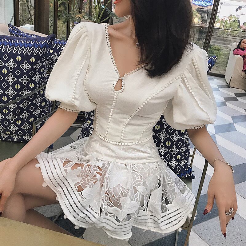 ♥ スリーブホワイトシャツ Vネックウェストスタイルショートスタンダードドレス レトロ ♥韓国系 欧州 ヨーロッパ インテリア ハイブランド ビジュー 宝石 ダイヤモンド ラインストーン ガーリー お呼ばれ カジュアル フェミニン エレガント 同窓会 女子会 海 食事会 合コン パーティー ド派手 メイク BTS TWICE NiziU BLACKPINK BB16466633934 | miel style clothing