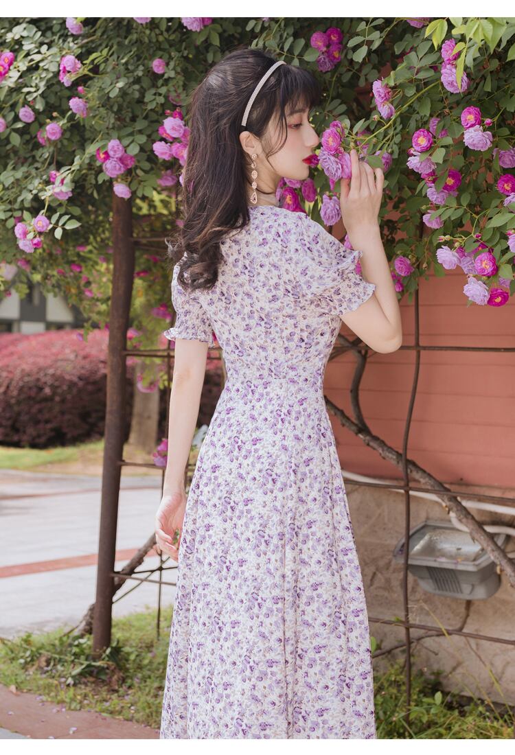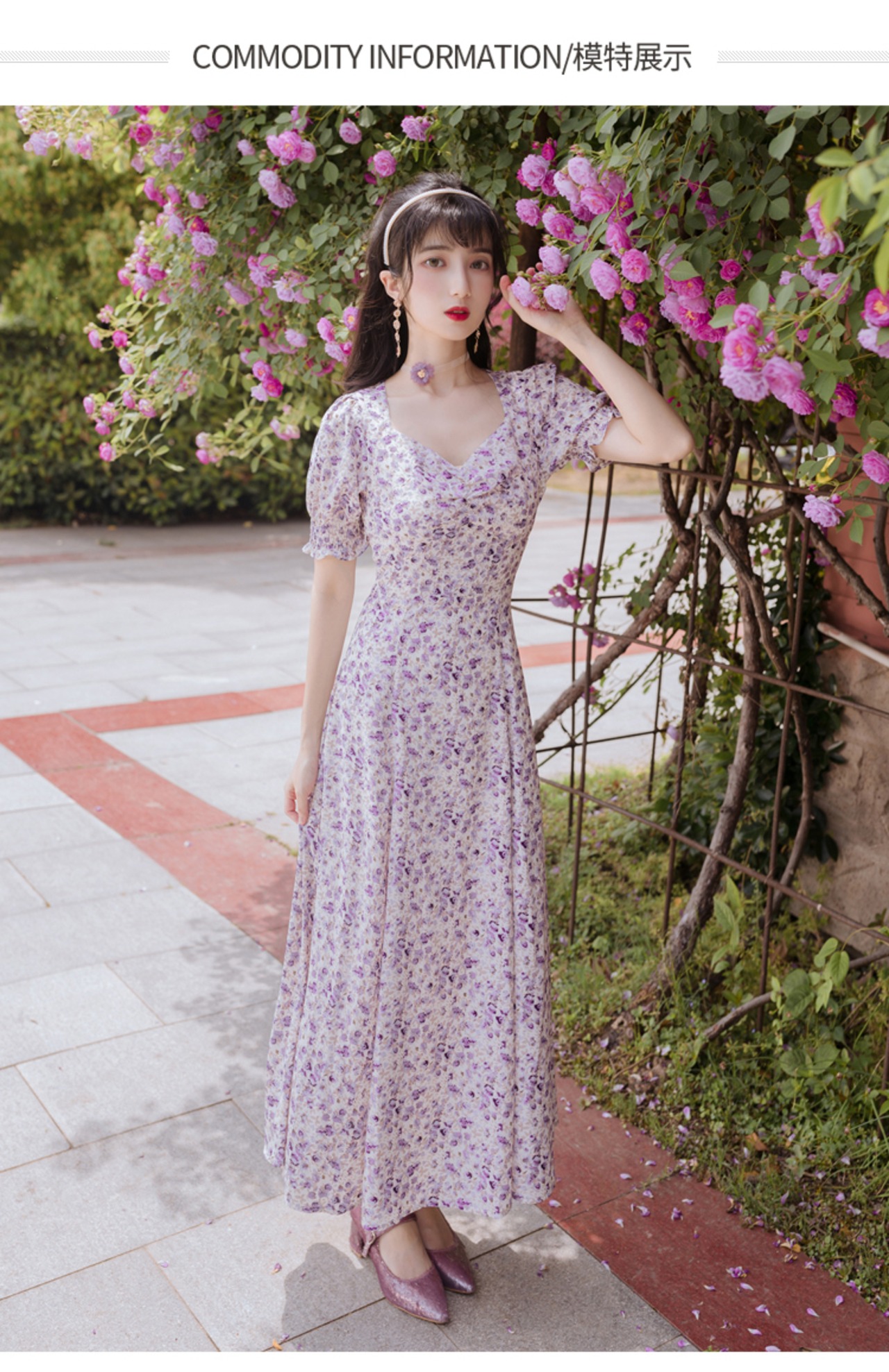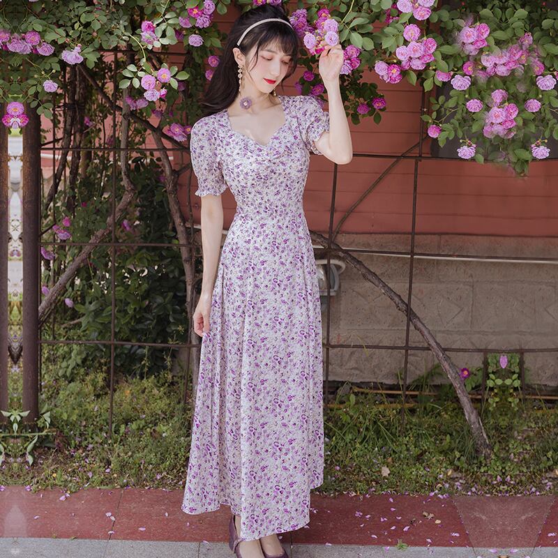 ♥ ロングアンクルフローラルシフォンドレス 花柄 スカート パープル ♥韓国系 欧州 ヨーロッパ インテリア ハイブランド ビジュー 宝石 ダイヤモンド ラインストーン ガーリー お呼ばれ カジュアル フェミニン エレガント 同窓会 女子会 海 食事会 合コン パーティー ド派手 メイク BTS TWICE NiziU BLACKPINK AA57471801024 | miel style clothing