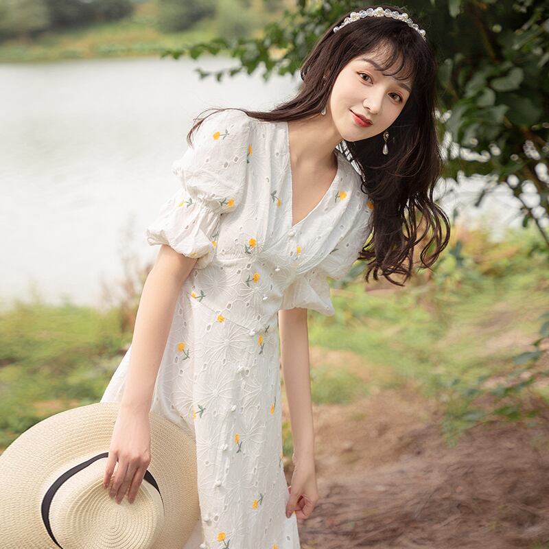 ♥ Flowerデザイン スカート ホワイトロングアンクルドレス フラワーデザイン ♥韓国系 欧州 ヨーロッパ インテリア ハイブランド ビジュー 宝石 ダイヤモンド ラインストーン ガーリー お呼ばれ カジュアル フェミニン エレガント 同窓会 女子会 海 食事会 合コン パーティー ド派手 メイク BTS TWICE NiziU BLACKPINK AA91073541776 | miel style clothing