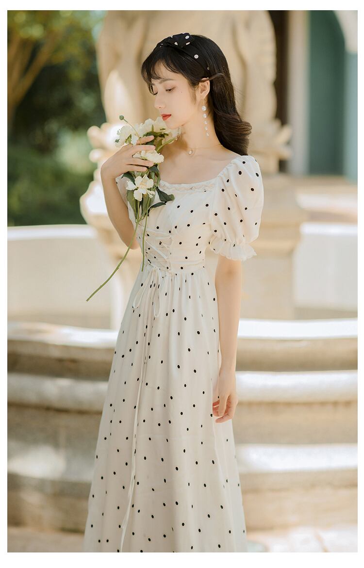 ♥ ホワイト水玉ドレス 大人ガーリー スウィート キュート カジュアル スカート フラワーデザイン ♥韓国系 欧州 ヨーロッパ インテリア ハイブランド ビジュー 宝石 ダイヤモンド ラインストーン ガーリー お呼ばれ カジュアル フェミニン エレガント 同窓会 女子会 海 食事会 合コン パーティー ド派手 メイク BTS TWICE NiziU BLACKPINK AA66037485148 | miel style clothing