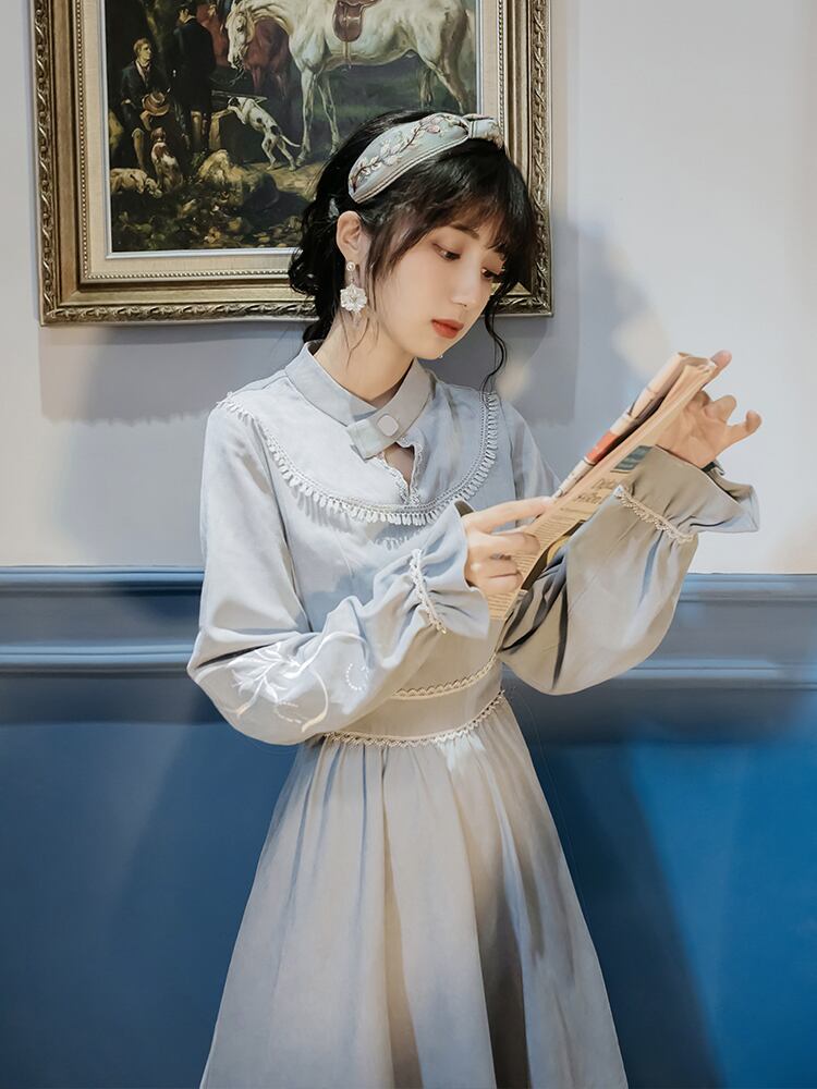 ♥ スタンダードカラーロングスカート ウェスト長袖スリーブドレス レトロ 大人ガーリー スウィート キュート カジュアル ♥韓国系 欧州 ヨーロッパ インテリア ハイブランド ビジュー 宝石 ダイヤモンド ラインストーン ガーリー お呼ばれ カジュアル フェミニン エレガント 同窓会 女子会 海 食事会 合コン パーティー ド派手 メイク BTS TWICE NiziU BLACKPINK AA92555552366 | miel style clothing