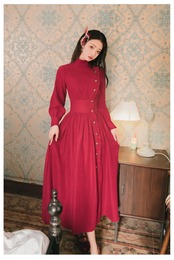 ♥ コーデュロイスタイルレッドワンピースドレス スカート オータムウィンター ドレス レトロ レース 秋物 冬物 ♥韓国系 欧州 ヨーロッパ インテリア ハイブランド ビジュー 宝石 ダイヤモンド ラインストーン ガーリー お呼ばれ カジュアル フェミニン エレガント 同窓会 女子会 海 食事会 合コン パーティー ド派手 メイク BTS TWICE NiziU BLACKPINK AA80085735822 | miel style clothing