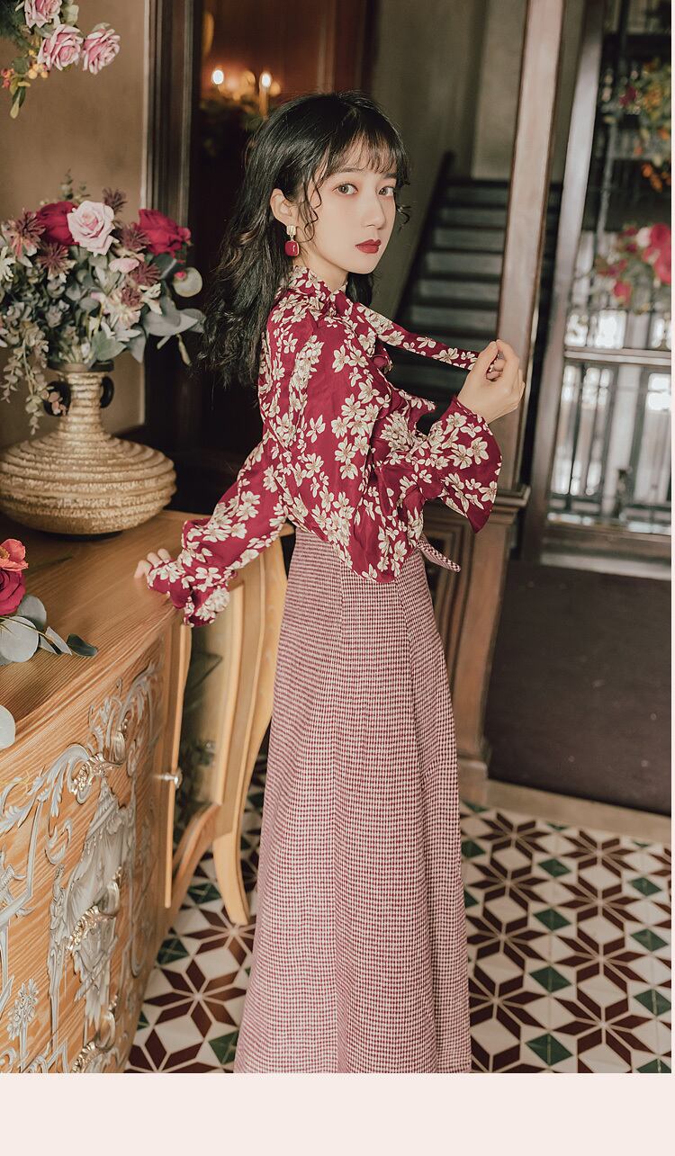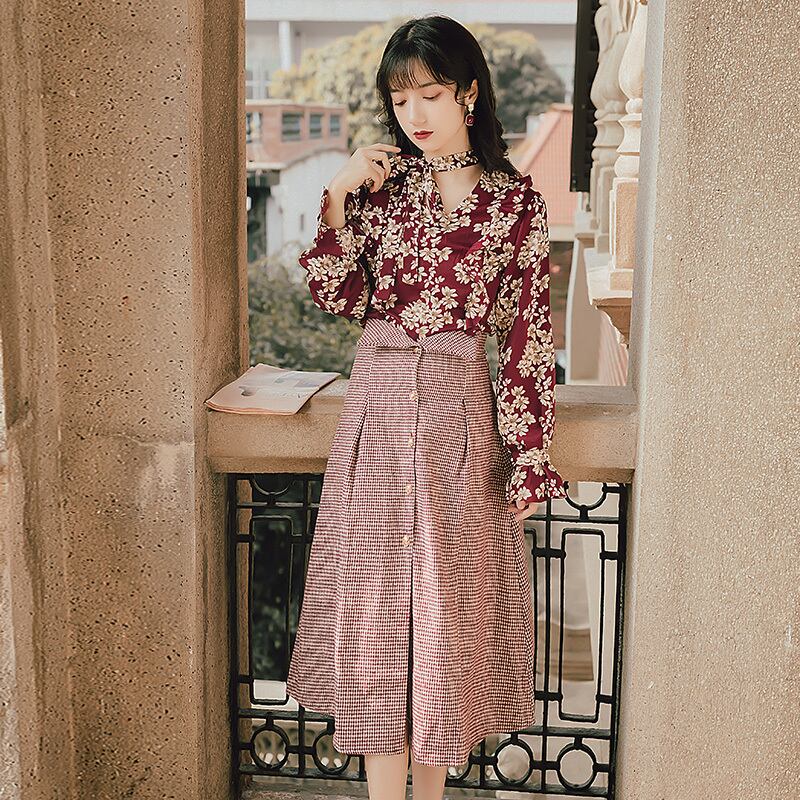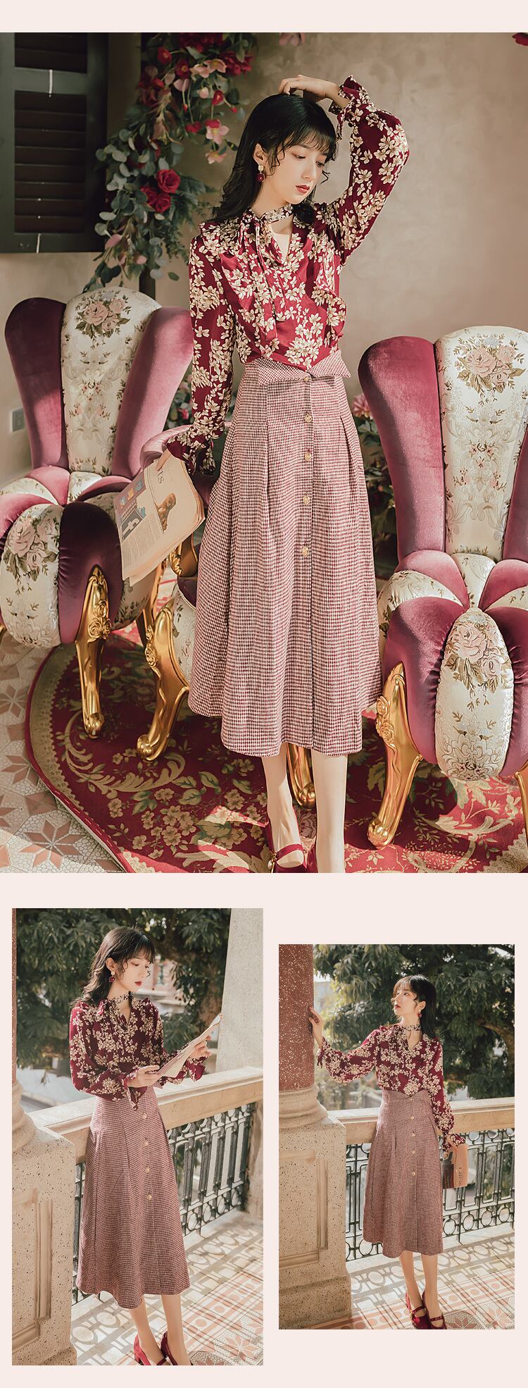 ♥ オータムスタイルシフォンシャツ 格子柄スカート スタンダード レトロ 秋物 ♥韓国系 欧州 ヨーロッパ インテリア ハイブランド ビジュー 宝石 ダイヤモンド ラインストーン ガーリー お呼ばれ カジュアル フェミニン エレガント 同窓会 女子会 海 食事会 合コン パーティー ド派手 メイク BTS TWICE NiziU BLACKPINK AA27523376409 | miel style clothing